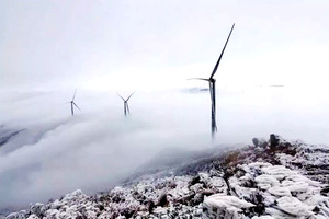 当然还有和白色的雪花撞色的大风车,在这个白茫茫的世界里,和雪花一争高下。