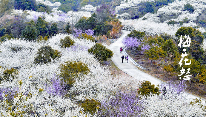 梁化御景峰国家森林公园现有成片梅树3000多亩,规模居国内之首。每年春节前后,梅花漫山遍野连片开放,万枝竞秀,风情万种,似云、似雾、似雪、如诗、如画、如锦,街坊可赏芳容,闻其馨香,摄其美态。