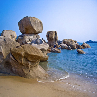 旁边有各种各样形态奇特的石群,像满地米、石一样,有鬼斧神工之妙,是巽寮石景观的典型代表