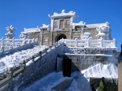 南岳衡山的冰雪雾凇,历来倍受游客的青睐;每年12月至来年的2月,巍巍南岳衡山群峰,独成一片银色世界。