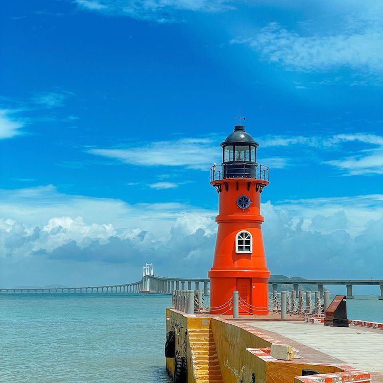 南屿双面海:退潮时的“ 天使之路”,映衬着远处的小绿灯塔;