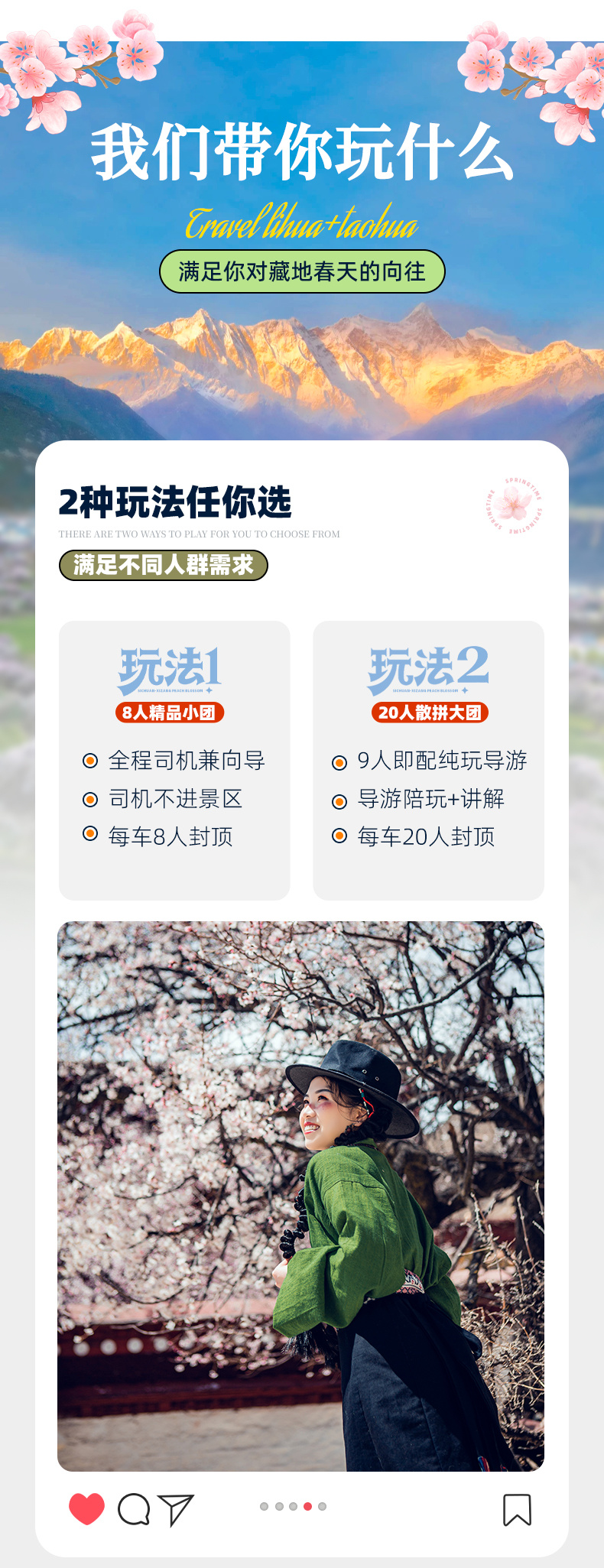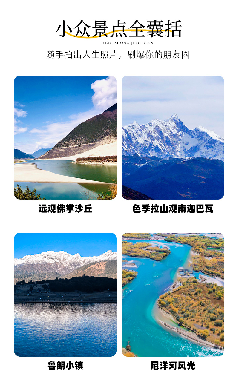 特色介绍:色季拉山、鲁朗小镇风光、波密桃花沟