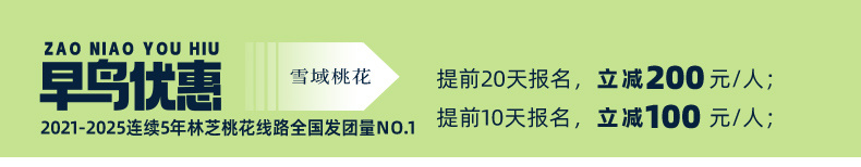 (3)到集合酒店报“大美林芝+姓名”拿房,房费已付,押金自付。入住酒店的时间一般在集合日当天的14点以后,如果您提前到达且酒店房间未整理出来无法办理入住,可将行李暂时寄存在前台,先在市区周边自由游玩;