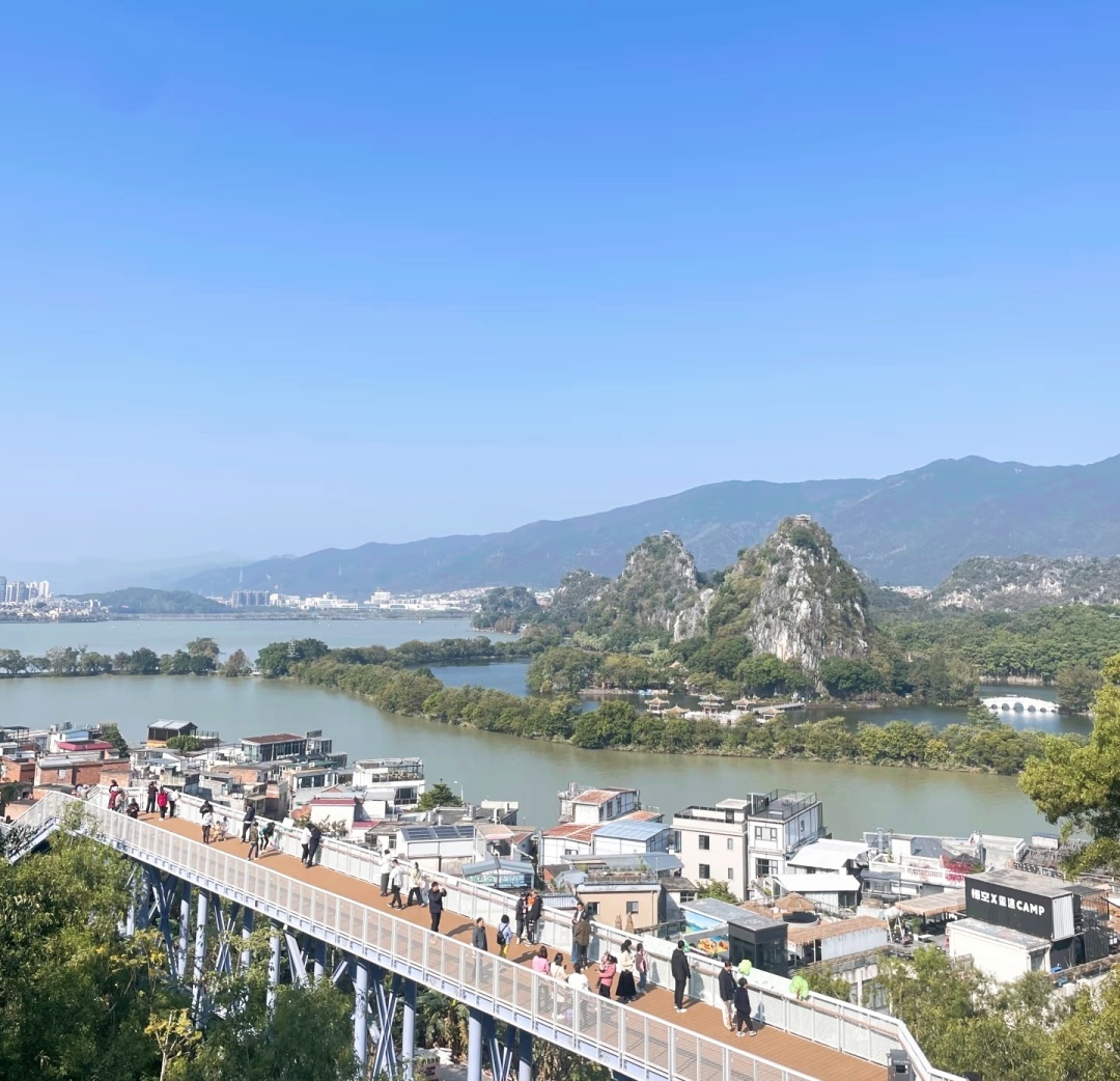 13:30 到达“肇庆岩前村”,这里被誉为“广东鼓浪屿”,位于星湖绿道,一个面山靠水的村庄,特别有文艺气息;且元旦建好开放的“象岗云道”,让这里的风景更加惊艳,随手一拍的大片,触手可得;